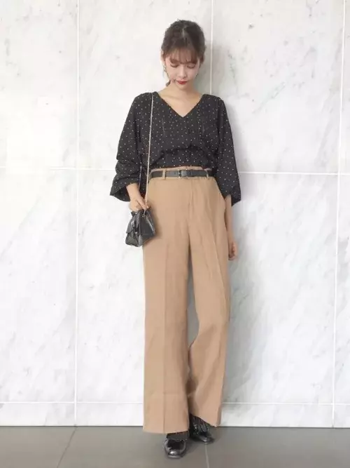 ドットブラウス ワイドパンツコーデ 大人のcoordinate Diary